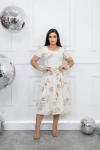 Comprimento Midi, possui forro e fechamento de zíper nas costas.